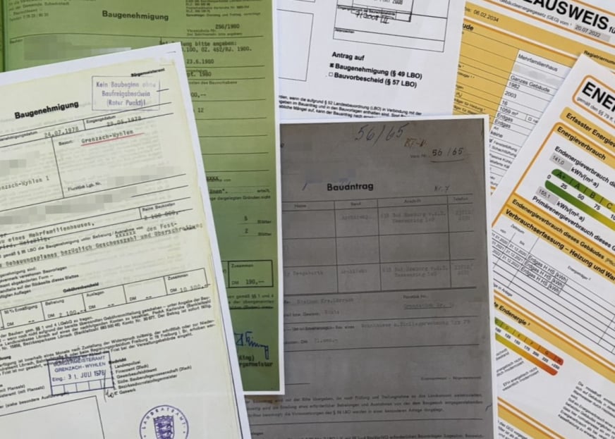 -- Bauantragsunterlagen und Baugenehmigung(en).